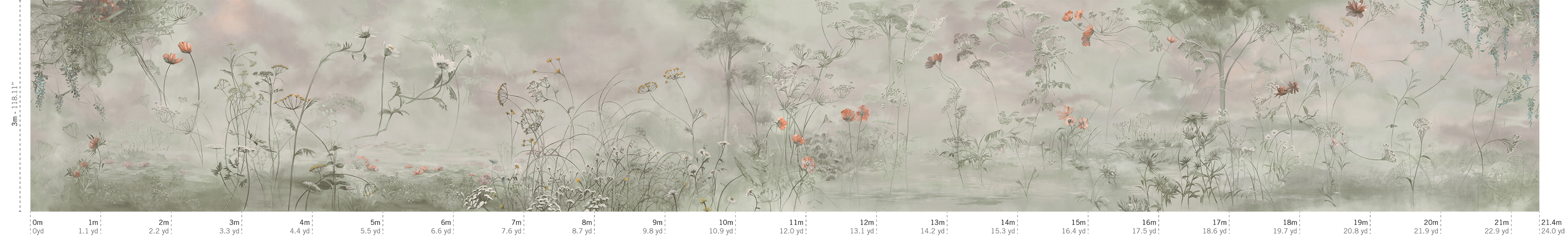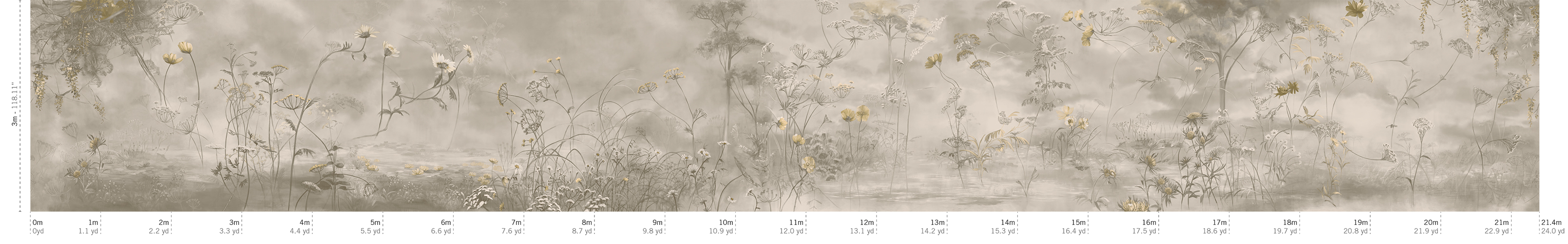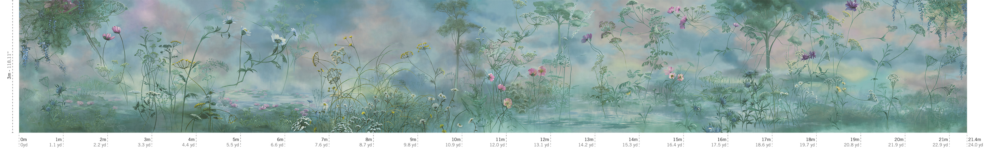 La novità della collezione The Grand Design è FLEURAISSANCE. Un’opera dal sapore quasi impressionista, adattato alle dimensioni del contemporaneo. Di pura ispirazione botanica e immerso in un mondo trasognato e sospeso, FLEURAISSANCE offre un panorama di acque ed arie, nubi e vapori, in una pluralità di fiori e foglie, petali e boccioli sospesi, liberi e leggeri, che danno vita a una composizione di pregiata e delicata eleganza. Lungo 22,9 m, è disponibile in 4 varianti colore: Aube Claire, Poudre de Rose, Etoile Noire, Jardin d'Azur.